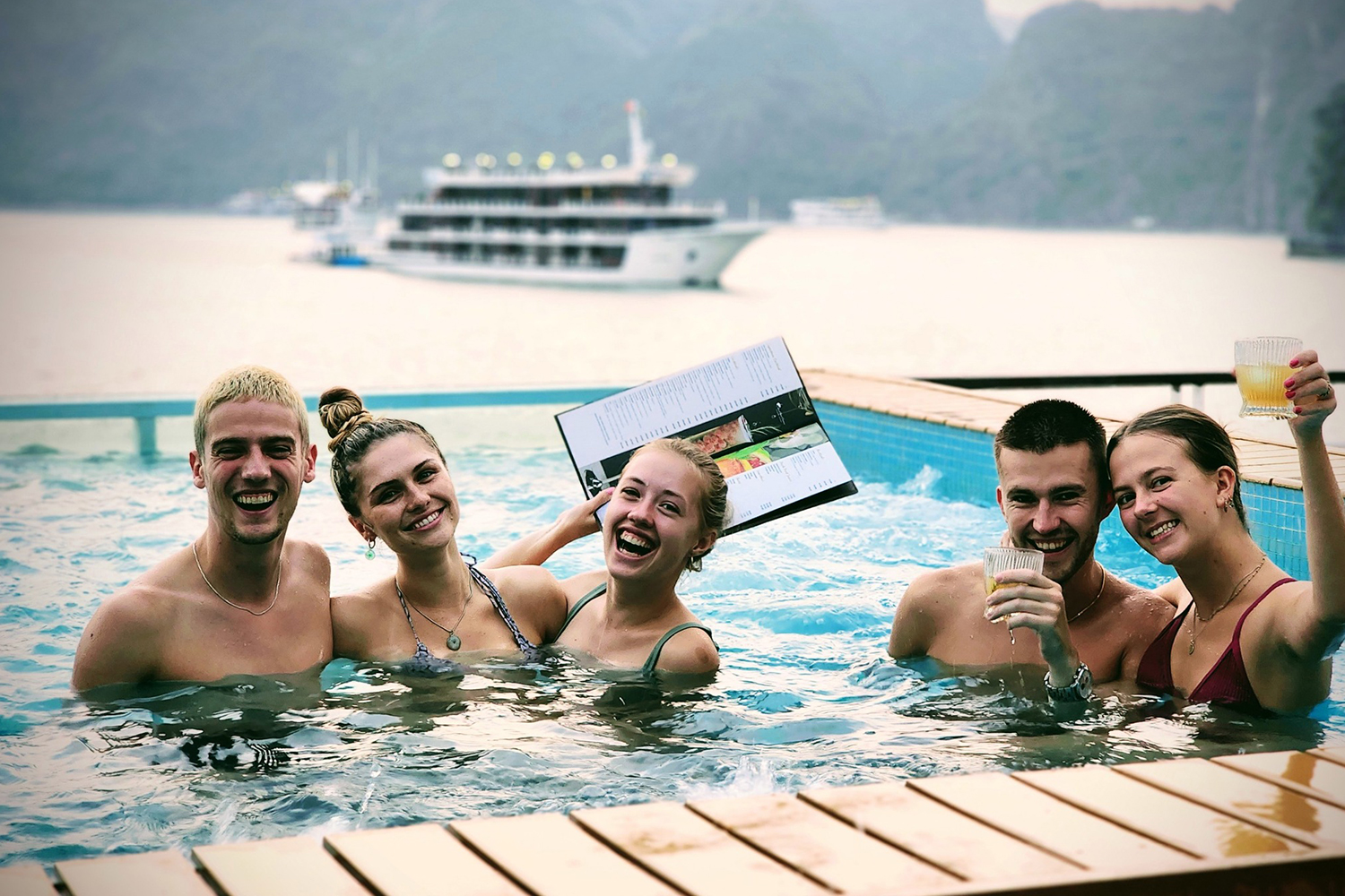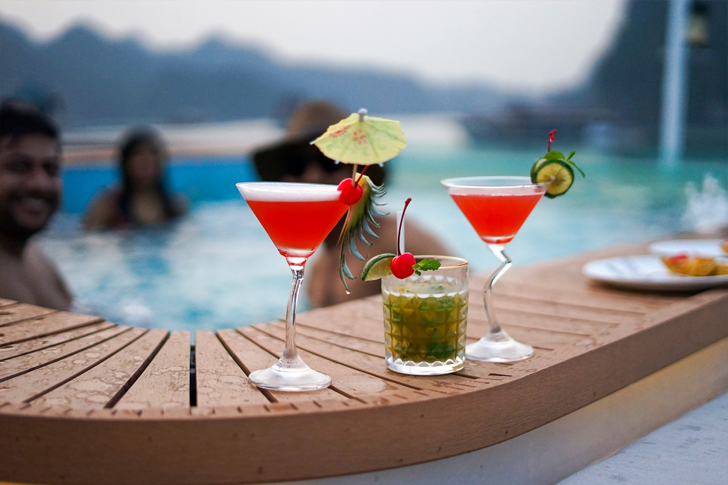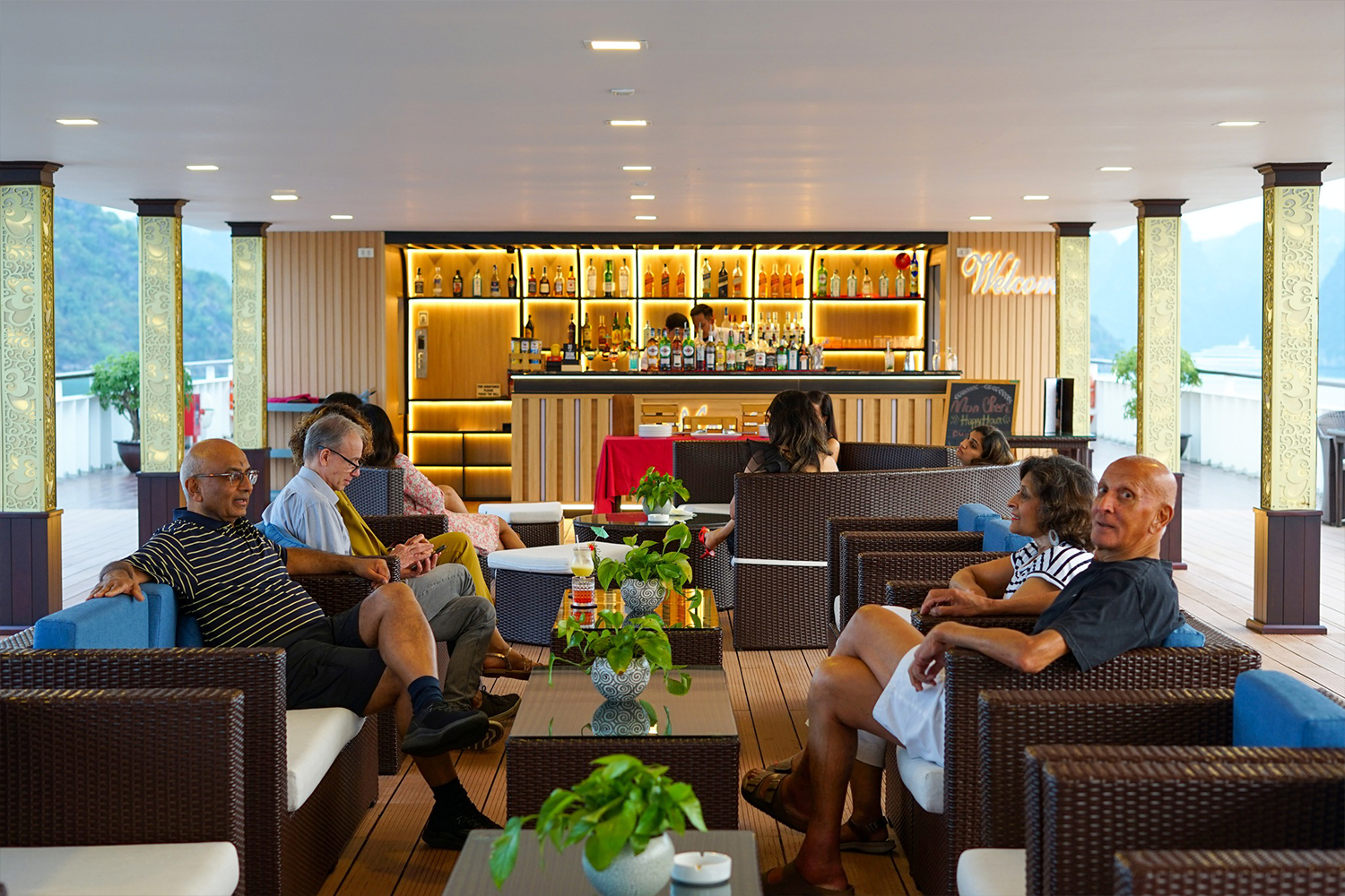 Enjoy a Happy Hour time – BUY ONE GET ONE FREE at the bar. It is an ideal time for photography enthusiasts to capture the greatest moment of sunset over Lan Ha Bay.